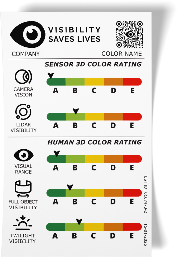 Visibility Label & RheoLight - Een totaal oplossing voor verhoogde zichtbaarheid en veiligheid voor fietsers Het Visibility Label is een passief zichtbaarheidslabel voor fietsen en fietsaccessoires dat de zichtbaarheid en detecteerbaarheid (autonoom rijden) van fietsers in het verkeer kan kwalificeren en kwantificeren. Het label is ontworpen als een communicatiemiddel tussen ontwerpeers, fabrikanten en consumenten en klassificeert de zichtbaarheid en detecteerbaarheid van verkeersdeelnemers zoals fietsen voor andere weggebruikers inclusief zelfrijdende voertuigen op basis van positie en beweging, en met name in situaties met beperkte lichtomstandigheden zoals schemer, nacht en slecht weer. Het Visibility Label is ontwikkeld door het team van Ink Invent en wordt als onafhankelijk initiatief gepromoot via de stichting i.o. www.VisibilitySavesLives.org. Het label (in concept vergelijkbaar met een Energie label) is gebaseerd op het door Ink Invent openbaar gepubliceerd meet-model, waarin zichtbaarheidsprincipes, verkeersinteractie en materiaaleigenschappen samenkomen - https://www.sae.org/articles/a-3d-visibility-label-mobility-coatings-enhancing-traffic-safety-color-sensor-perception-12-09-02-0009 -. Deze publicatie onderbouwt hoe gerichte zichtbaarheid bijdraagt aan snellere detectie en een betere inschatting door andere verkeersdeelnemers, zonder afhankelijk te zijn van actieve verlichting of aanpassing van gebruikersgedrag. Het publieke belang van het Visibility Label ligt in het verhogen van de algehele verkeersveiligheid op schaal. Door zichtbaarheid als integraal onderdeel van het fietsontwerp te benaderen, de fabrikant en consument bewust te maken van de invloed die een fietlak (kleur) heeft op de zichtbaarheid en dus veiligheid, en de oplossing biedt om hier een bewuste keuze in te maken tijdens het aankoop-process, draagt het label bij aan het verminderen van ongevallen veroorzaakt door onvoldoende waarneming. Het Visibility Label is universeel toepasbaar voor elke kleur en stimuleert een veiligere deelname van fietsers aan het verkeer, ook bij verhoogde toename van autonoom rijden, wat aansluit bij maatschappelijke doelen rond verkeersveiligheid, actieve mobiliteit en duurzame verplaatsing. Bestaande kleuren nog beter zichtbaar en detecteerbaar maken met RheoLight: RheoLight is een innovatieve zichtbaarheidsverhogend verf additief voor (kleur)lakken van fietsen waarmee de veiligheid van fietsers in het verkeer aanzienlijk vergroot wordt. De oplossing is de integratie van RheoLight in de kleur lak van fietsen. RheoLight is een geavanceerde lichtversterkende pigmenttechnologie die inkomend licht actief verspreidt in meerdere richtingen. Hierdoor worden objecten - zoals fietsers - eerder, duidelijker en vanuit meer kijkhoeken beter waarneembaar voor andere verkeersdeelnemers en zelfrijdende systemen, met name bij schemer, nacht en slecht weer. In tegenstelling tot enkele reflectoren, zorgt een met RheoLight verbeterde laklaag voor een dynamisch en breder zichtbaar lichtsignaal als integraal onderdeel van de lak met behoud van kleur. De technologie is volledig passief, werkt zonder elektriciteit of batterijen en kan (door fabrikanten) eenvoudig worden geïntegreerd in de lak van fietsframes, accessoires, bagagedragers en textiel. Zo wordt veiligheid structureel en integraal opgenomen in het ontwerp van de fiets als geheel.